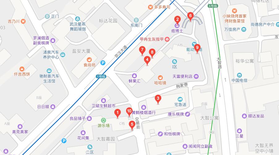 地址:武漢市江岸區(qū)大智街京漢大道1058號銀泰大智嘉園A棟1層21號(地鐵1號線、6號線E出口)